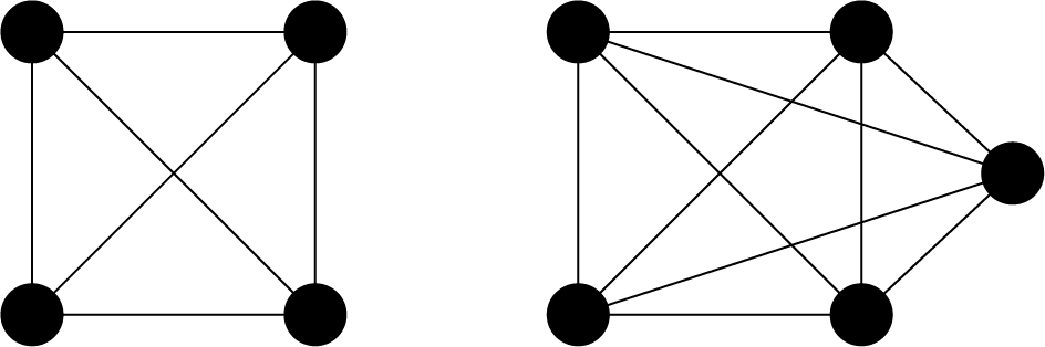 A complete graph is a graph whose two vertices are all adjacent to each other (not including loops or multiple edges). We show two examples below.